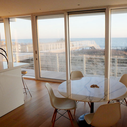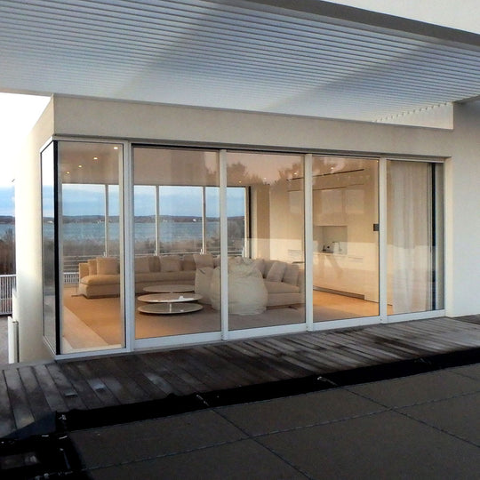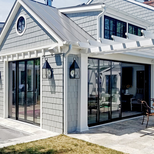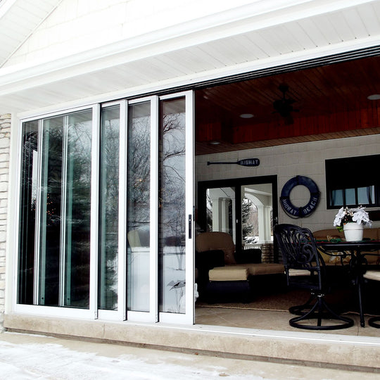 Therma-Tru's aluminum narrow stile and rail sliding glass door systems manufactured by Solar Innovations offer expansive views and easy access to outdoor living spaces with familiar operation. Featuring a flexible design with large panel sizes and multiple configurations, these doors deliver completely unobstructed views when fully opened.